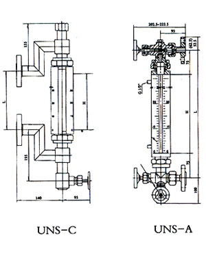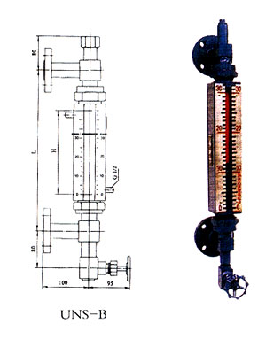 UNS(UGS)系列彩色石英管液位計(以下簡稱彩色液位計)是采用國內(nèi)外高科技研制而成,它是普通玻璃板液位計更新?lián)Q代產(chǎn)品,它廣泛用于石油、化工、電力、冶金等行業(yè)各種透明液體容器和鍋爐上,如,水、汽油、液化氣、液氨、丙烷、丙烯,酸等油品和化工原料的液位測量,同時適用于二種不同介質(zhì)密度的界面測量。彩色液位計安裝在各種容器及鍋爐上,直接觀測到液位變化,液相顯示呈現(xiàn)綠色,氣相顯示呈現(xiàn)紅色,界面測量呈三色分界面。液、氣顯示反差很大,在遠(yuǎn)距離觀察、夜間巡視顯明清晰。它成功地克服了普通板式液位基本中,密封面積打、易滲漏,顯示不清晰,在很近距離難易判斷的缺點。它是目前國內(nèi)外理想的直讀式液位計。 |