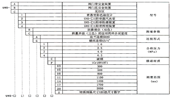 4、測量范圍L:測量范圍按中心距離而制定:300、500、800、1100、1400、1700、2000mm鍋爐水位計;300、350、440mm,特殊規(guī)格請注明尺寸