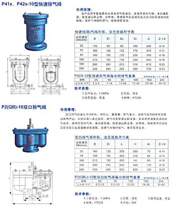 c65bP41X、P42X、P2(QB)快速排氣閥/雙口排氣閥誕生于70年代,體形大,重量重,排氣量小,該排氣閥在80年代末為理想產(chǎn)品,問世以來一直還續(xù)用。排氣閥是管道必配設備,安裝在管道高點或閉氣地方,來排除管內(nèi)氣體,來疏通管道,使管道運轉(zhuǎn)正常,保證排氣時絕不排水.只要系統(tǒng)有壓力,排氣閥就會連續(xù)不斷的排氣