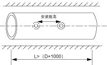 將管道參數(shù)輸入主機,計算出安裝距離(由于采用插入式探頭,建議均使用直接測量方式,即Z安裝方式)定出兩個探頭的位置,安裝距離為兩個探頭的中心距。