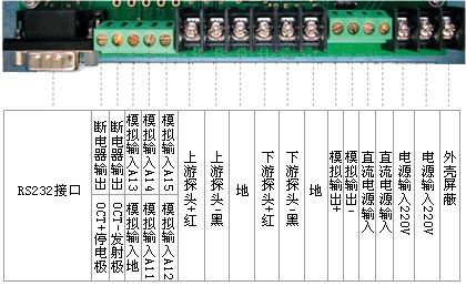 探頭連線要采用高頻雙絞線,采用高頻雙絞線的好處是能使抗干擾性能大大提高。外貼式上游探頭的紅色芯線接到41號接線端子上,黑色的芯線接到42號接線端子上(顛倒過來也可以),屏蔽外皮接到43號接線端子上;下游探頭的紅色芯線接到44號接線端子上,黑色的芯線接到45號接線端子上(顛倒過來也可以),屏蔽外皮接到46號接線端子上。