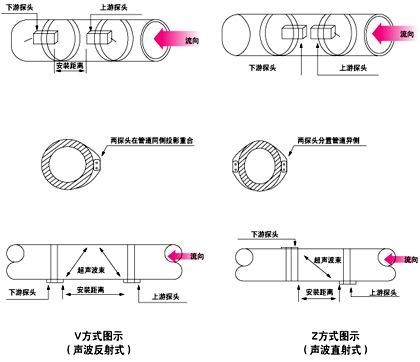 超聲波探頭共有V方式,Z方式和插入式三種安裝方式