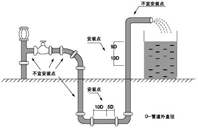 2、測量位置應選在探頭上游有大于10D和下游有5D直管段處;