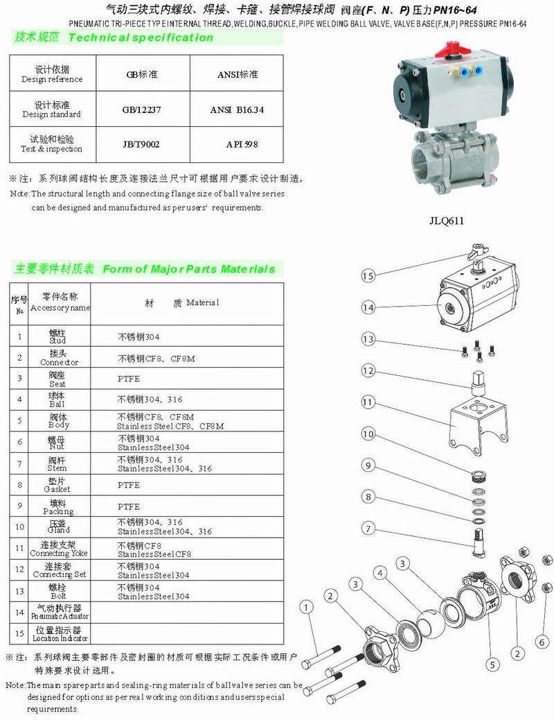 JLQ6氣動三塊式內螺紋/焊接/卡箍/接管焊接球閥是我公司的優(yōu)質產(chǎn)品之一,在上海JLQ6氣動三塊式內螺紋/焊接/卡箍/接管焊接球閥廠家中享有極高的品質聲譽與服務評價.