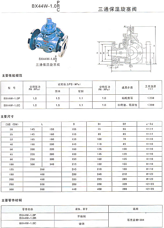 三通保溫旋塞閥產(chǎn)品簡(jiǎn)介: BX44W三通保溫旋塞閥又三通稱夾套旋塞閥,是在普通三通旋塞閥的基礎(chǔ)上,在旋塞閥閥體外部焊裝金屬夾套。在閥體兩測(cè)裝有夾套接口,可涵入蒸氣或其它過(guò)熱氣體,以保護(hù)閥內(nèi)介質(zhì)不會(huì)在常溫下凝固或結(jié)晶。同一規(guī)格口徑的情況下,保溫旋塞閥的連接尺寸要比普通旋塞閥大一到兩個(gè)規(guī)格。BX44W三通保溫旋塞閥主要用于石油、化工、冶金、制藥等各類系統(tǒng)。 |