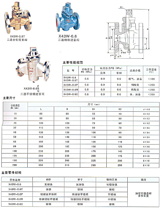 | X43W二通全銅-鑄鐵-不銹鋼旋塞閥,主要性能規(guī)范: