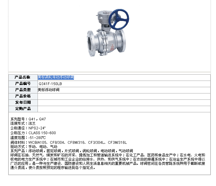 美標(biāo)渦輪傳動(dòng)浮動(dòng)球閥