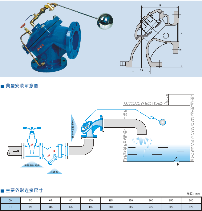 100A角型定水位閥是一種隔膜式調節(jié)水箱和水塔液面高度的閥門。閥門由一特殊強化尼龍膜片將其分為上下兩個空室,當液面達到設定位置時,浮球導閥關閉,上腔壓力大于下腔,閥門關閉,即停止供水;當液面下降超過預設位置,浮球導閥開啟,上腔壓力小于下腔壓力,閥門開啟,閥門向池內供水。角型定水位閥安裝方便,可省去管道彎頭,節(jié)省安裝空間。該閥保養(yǎng)簡單、靈活耐用、液位控制準確度高,水位不受水壓干擾且關閉緊密不漏水,性能可靠,成本底。浮球可隨水池的高度和距度安裝。