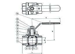 注:二片式球閥連接形式另有對(duì)焊(BW)承插焊(SW),并均可帶國(guó)際標(biāo)準(zhǔn)ISO支架和鎖定裝置 |