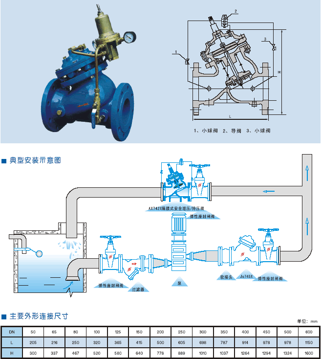 AX742X隔膜式安全泄壓/持壓閥是安裝在高層建筑、消防給水系統(tǒng)以及其它給水系統(tǒng)的管道上,當(dāng)給水管道中 壓力超過泄壓閥設(shè)定壓力時,泄壓閥自動開啟快速泄壓,保護(hù)管線的安全,也可作持壓閥用,保障主閥上游的供水壓力。能準(zhǔn)確保持不邊的安全設(shè)定壓力,泄壓閥迅速打開,及時泄壓。關(guān)閉平穩(wěn)可靠,消除壓力余波。 |