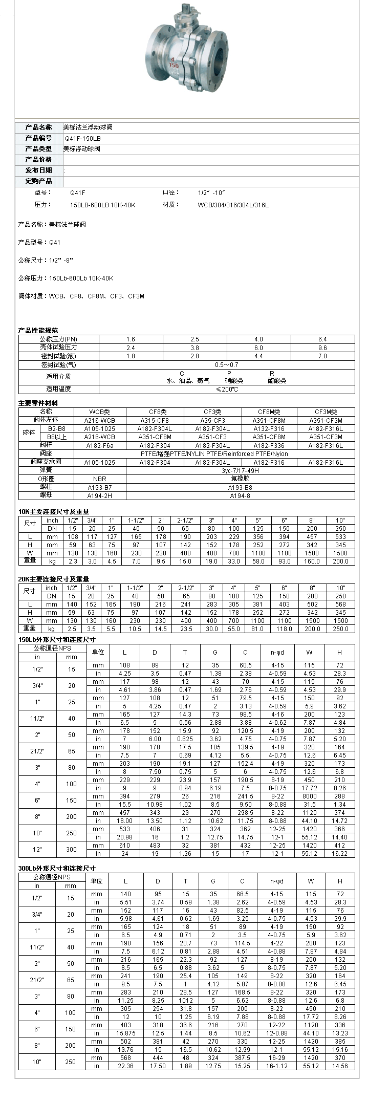 美標法蘭浮動球閥