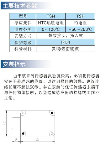 TS系列溫度傳感器采用NTC熱敏電阻為感溫元件,經(jīng)精密的封裝工藝生產(chǎn)而成。具有靈敏度高、穩(wěn)定性強、耐腐蝕、壽命長、安裝方便等優(yōu)點。適用于任何高、低溫及潮濕等惡劣環(huán)境。該溫度傳感器能迅速準確地檢測空氣和水的溫度,并把信號傳遞至控制系統(tǒng),達到準確控制水和空氣溫度的目的。